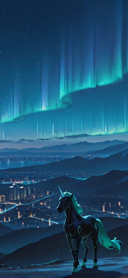 Blue Night City Aurora smartphone wallpaper free download, vertical 16:9 format, Blue, Night, City, Summer