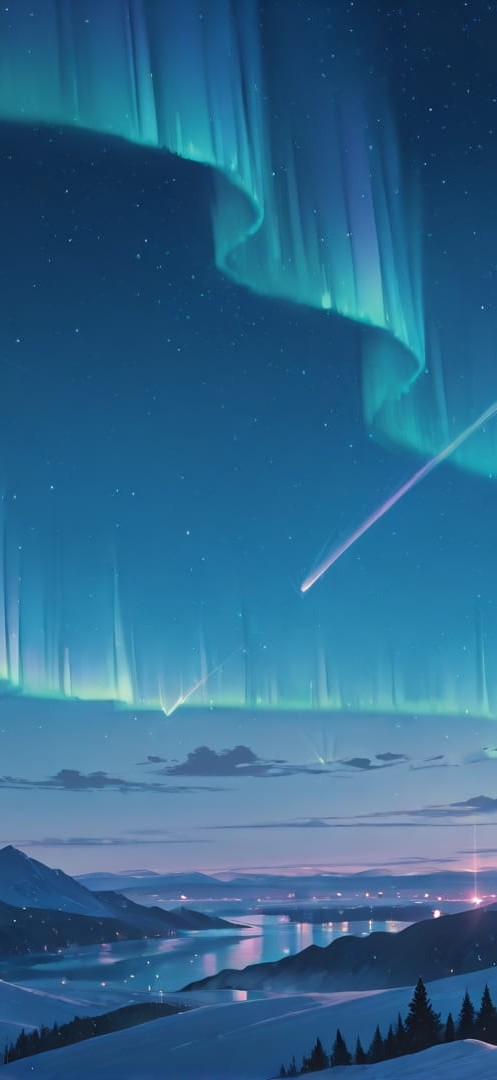 Blue Night City Aurora | Portrait wallpaper | 9:16 | Free smartphone wallpaper