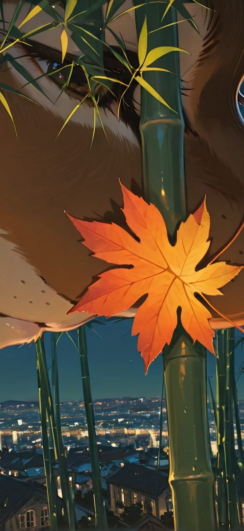 Green Night City Bamboo smartphone wallpaper free download, vertical 16:9 format, Green, Night, City, Autumn