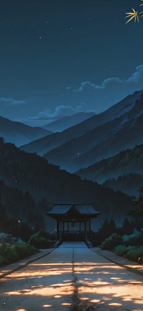 Orange Night Mountain Bamboo smartphone wallpaper free download, vertical 16:9 format, Orange, Night, Mountain, Spring