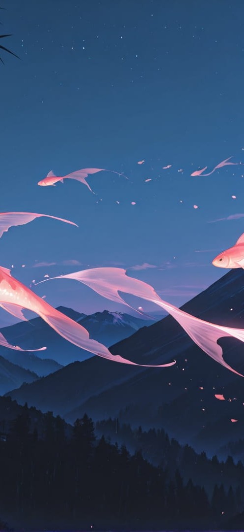 Pink Night Mountain Bamboo smartphone wallpaper free download, vertical 16:9 format, Pink, Night, Mountain, Spring