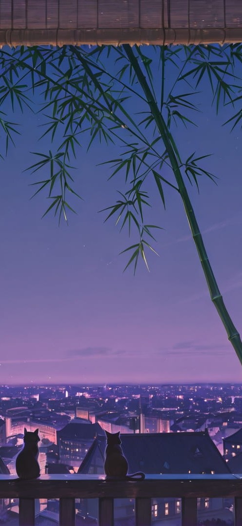 Purple Night City Bamboo smartphone wallpaper free download, vertical 16:9 format, Purple, Night, City, Summer