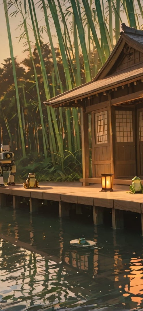 Yellow Sunset Sea Bamboo | 1920×1080 | 16:9 | Free smartphone wallpaper