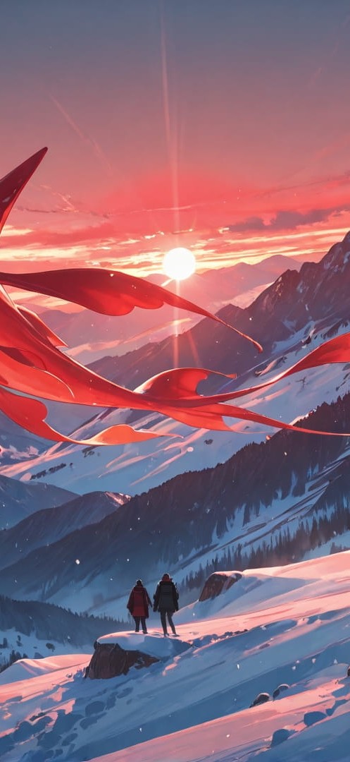 Red Afternoon Mountain BlockParty smartphone wallpaper free download, vertical 16:9 format, Red, Afternoon, Mountain, Winter