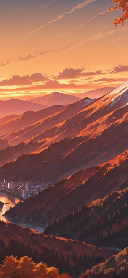 Orange Sunset Mountain Canada smartphone wallpaper free download, vertical 16:9 format, Orange, Sunset, Mountain, Autumn