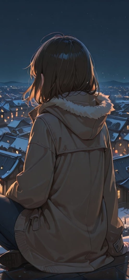 Purple Night City Cat | Portrait wallpaper | 9:16 | Free smartphone wallpaper