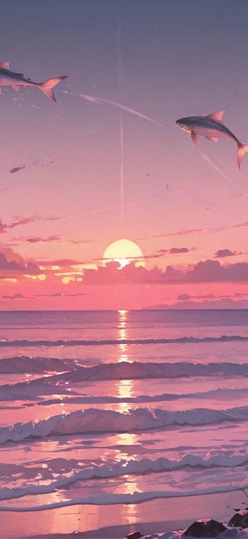 Orange Sunset Sea Cat | Portrait wallpaper | 9:16 | Free smartphone wallpaper