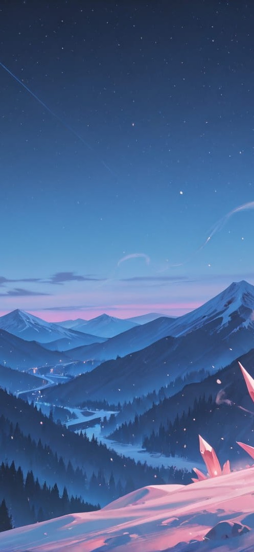 Pink Night Mountain Crystal smartphone wallpaper free download, vertical 16:9 format, Pink, Night, Mountain, Winter