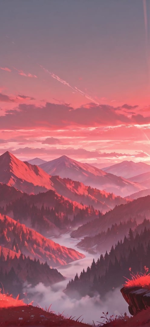 Red Afternoon Mountain Crystal smartphone wallpaper free download, vertical 16:9 format, Red, Afternoon, Mountain, Spring