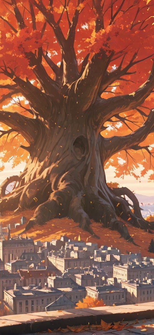 Red Afternoon City Crystal smartphone wallpaper free download, vertical 16:9 format, Red, Afternoon, City, Autumn