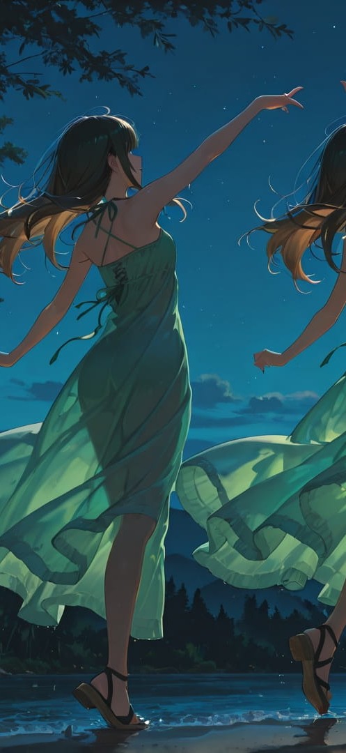 Green Night Nature Dance smartphone wallpaper free download, vertical 16:9 format, Green, Night, Nature, Summer