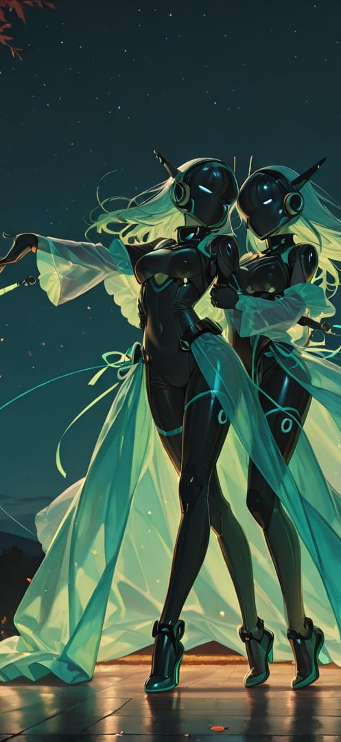 Green Night Sky Dance smartphone wallpaper free download, vertical 16:9 format, Green, Night, Sky, Autumn