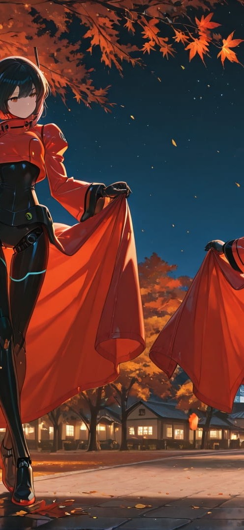 Red Night City Dance smartphone wallpaper free download, vertical 16:9 format, Red, Night, City, Autumn