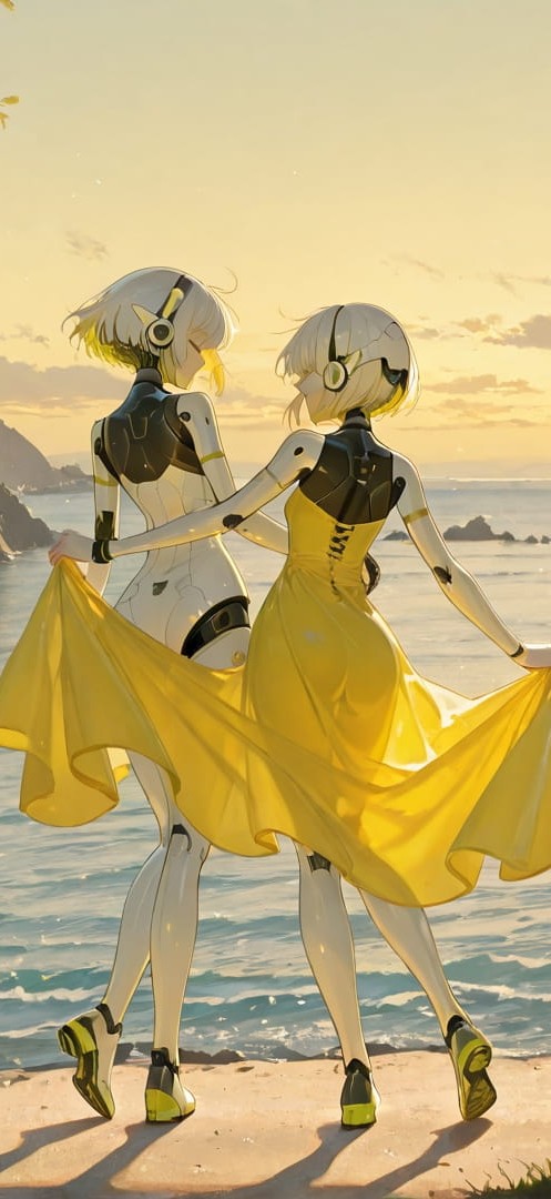 Yellow Afternoon Sea Dance smartphone wallpaper free download, vertical 16:9 format, Yellow, Afternoon, Sea, Spring