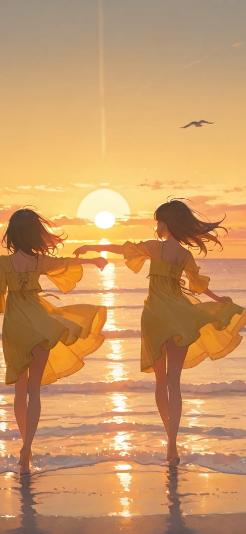 Yellow Sunset Sea Dance smartphone wallpaper free download, vertical 16:9 format, Yellow, Sunset, Sea, Spring