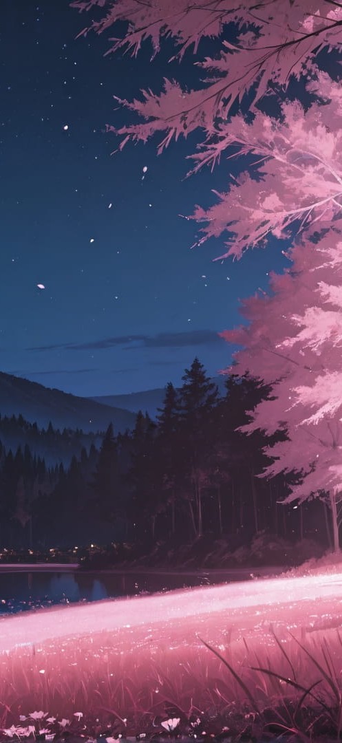 Pink Night Nature Explorecore smartphone wallpaper free download, vertical 16:9 format, Pink, Night, Nature, Spring 001