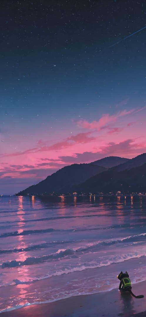 Pink Night Sea Explorecore smartphone wallpaper free download, vertical 16:9 format, Pink, Night, Sea, Autumn 001