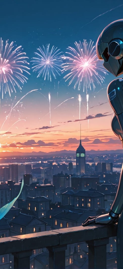 Brown Sunset City Fireworks | Portrait wallpaper | 9:16 | Free smartphone wallpaper