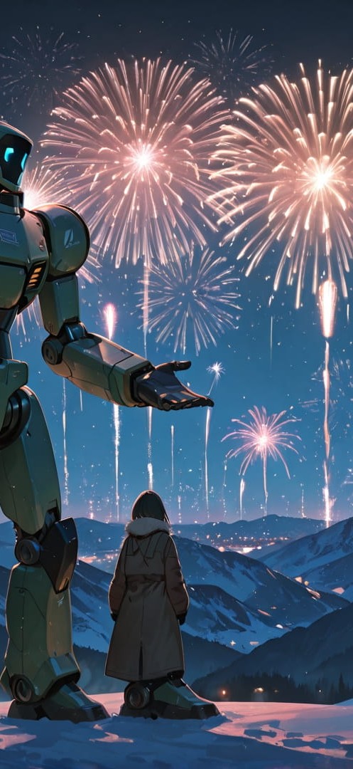 Green Night Mountain Fireworks smartphone wallpaper free download, vertical 16:9 format, Green, Night, Mountain, Winter