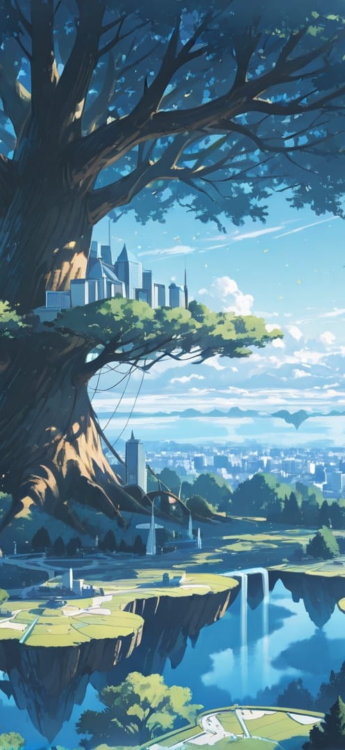 Blue Afternoon City FloatingIslands smartphone wallpaper free download, vertical 16:9 format, Blue, Afternoon, City, Spring