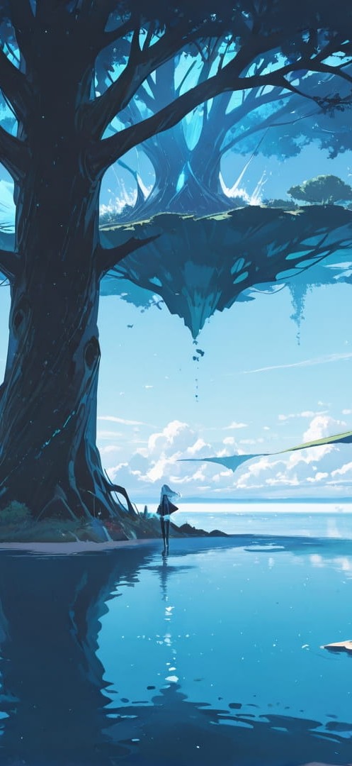 Blue Afternoon Sea FloatingIslands smartphone wallpaper free download, vertical 16:9 format, Blue, Afternoon, Sea, Spring