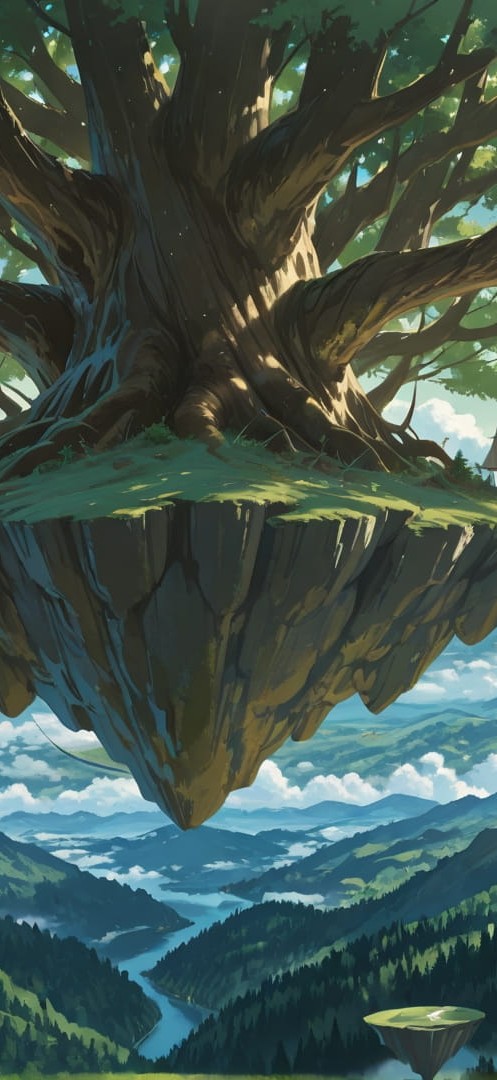 Green Afternoon Mountain FloatingIslands smartphone wallpaper free download, vertical 16:9 format, Green, Afternoon, Mountain, Summer