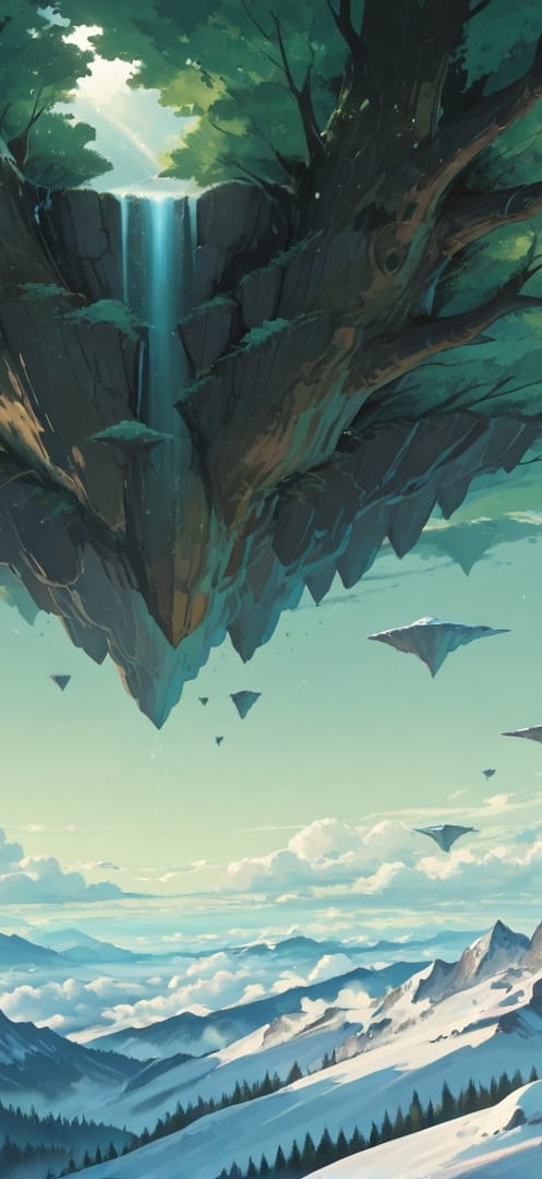 Green Afternoon Nature FloatingIslands smartphone wallpaper free download, vertical 16:9 format, Green, Afternoon, Nature, Winter