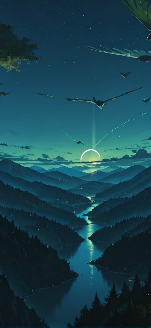 Green Night Mountain FloatingIslands smartphone wallpaper free download, vertical 16:9 format, Green, Night, Mountain, Summer