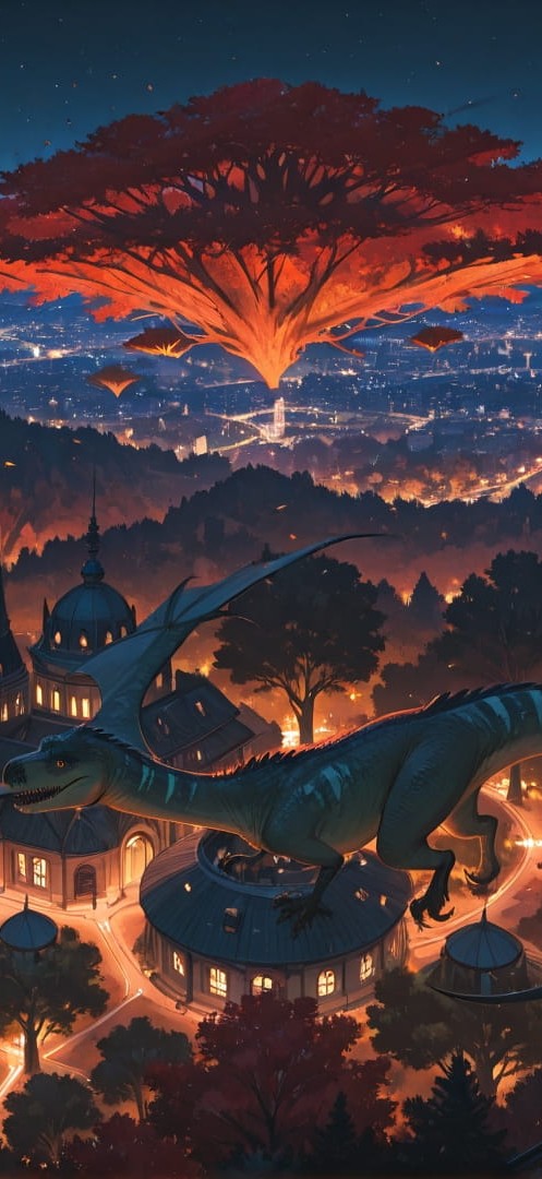 Red Night City FloatingIslands smartphone wallpaper free download, vertical 16:9 format, Red, Night, City, Autumn