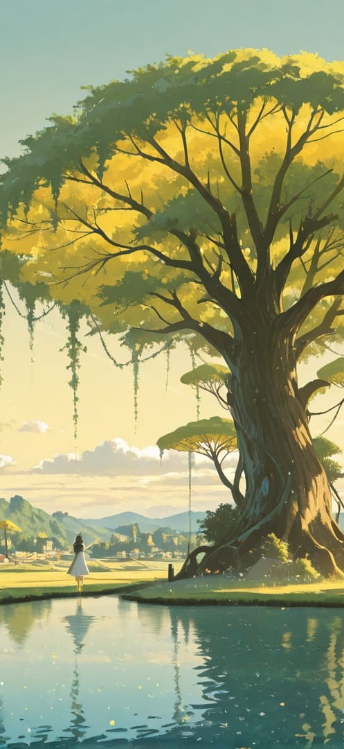 Yellow Afternoon Sky FloatingIslands smartphone wallpaper free download, vertical 16:9 format, Yellow, Afternoon, Sky, Spring