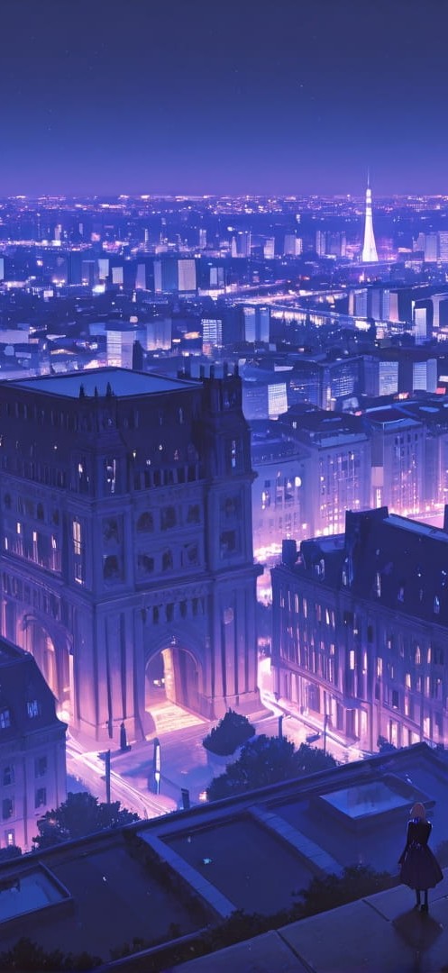 Purple Night City France smartphone wallpaper free download, vertical 16:9 format, Purple, Night, City, Spring