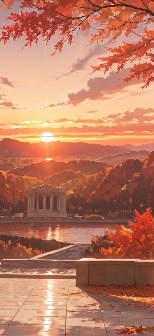 Red Sunset Nature France smartphone wallpaper free download, vertical 16:9 format, Red, Sunset, Nature, Autumn