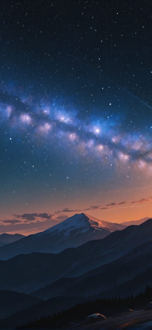 Yellow Sunset Mountain Galaxy | Portrait wallpaper | 9:16 | Free smartphone wallpaper