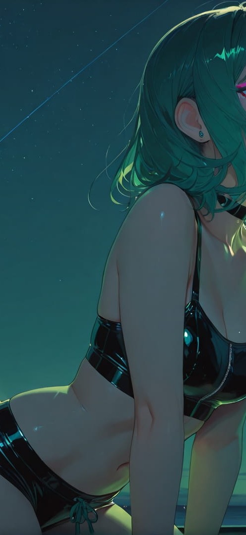 Green Night Sky GlitchyGlam smartphone wallpaper free download, vertical 16:9 format, Green, Night, Sky, Summer