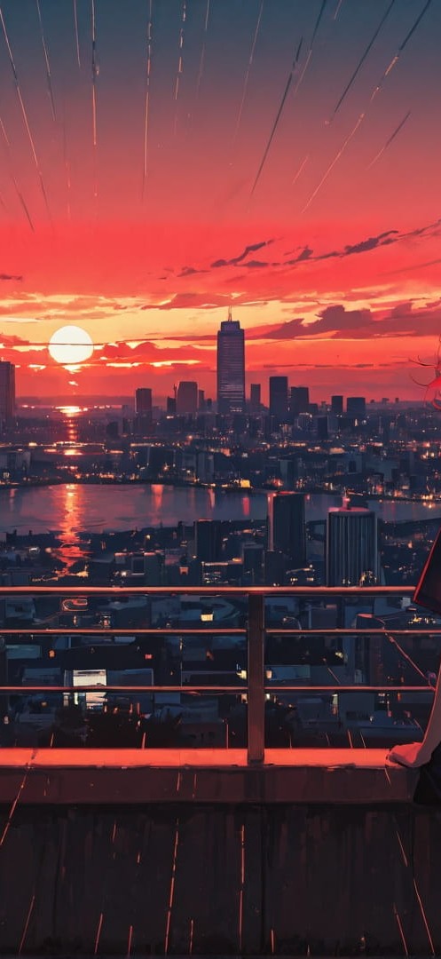 Red Sunset City GlitchyGlam smartphone wallpaper free download, vertical 16:9 format, Red, Sunset, City, Summer