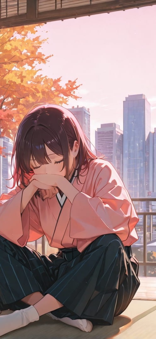 Pink Afternoon City Japanese smartphone wallpaper free download, vertical 16:9 format, Pink, Afternoon, City, Autumn