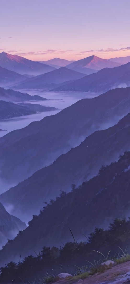 Purple Afternoon Mountain Japanese smartphone wallpaper free download, vertical 16:9 format, Purple, Afternoon, Mountain, Summer