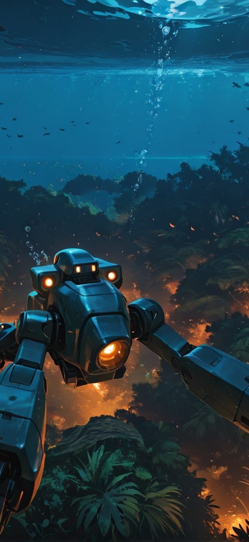 Yellow Night Sea Jungle | Portrait wallpaper | 9:16 | Free smartphone wallpaper