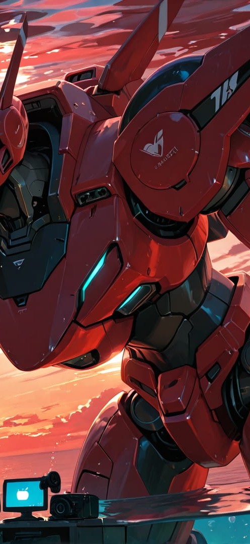 Red Sunset Sea MR smartphone wallpaper free download, vertical 16:9 format, Red, Sunset, Sea, Summer