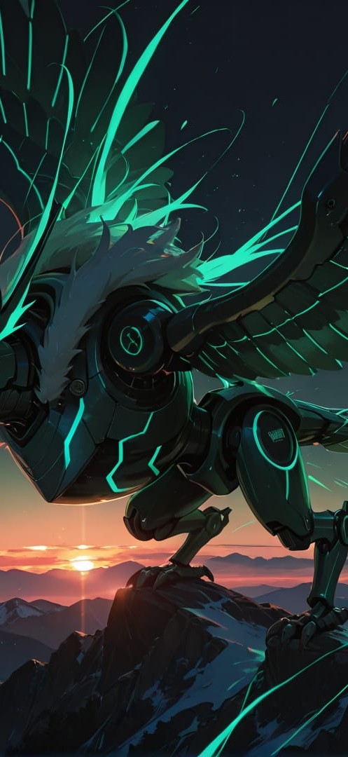 Green Sunset Mountain Neon smartphone wallpaper free download, vertical 16:9 format, Green, Sunset, Mountain, Winter