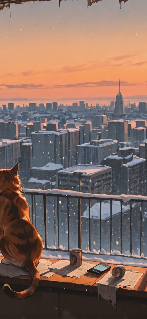 Orange Afternoon City NotesAppChic smartphone wallpaper free download, vertical 16:9 format, Orange, Afternoon, City, Winter