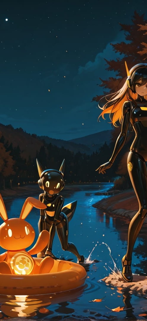 Orange Night Sea PromptPlayground smartphone wallpaper free download, vertical 16:9 format, Orange, Night, Sea, Autumn