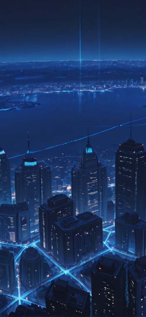 Blue Night City RealityWarp smartphone wallpaper free download, vertical 16:9 format, Blue, Night, City, Spring