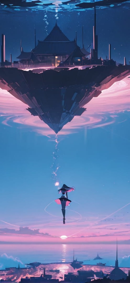 Pink Night Sea RealityWarp smartphone wallpaper free download, vertical 16:9 format, Pink, Night, Sea, Summer