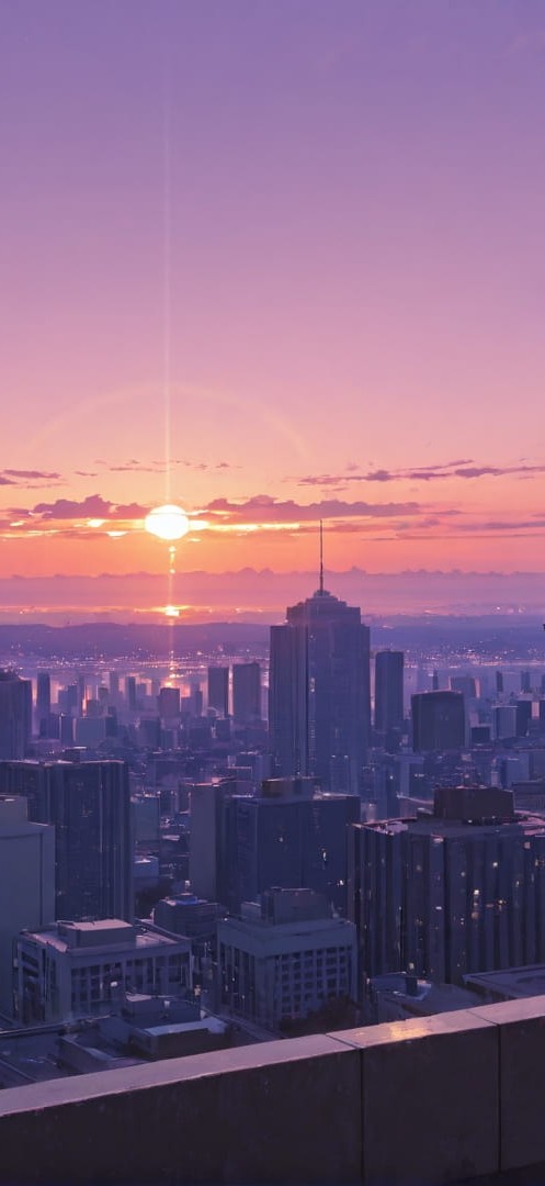 Purple Sunset City RealityWarp smartphone wallpaper free download, vertical 16:9 format, Purple, Sunset, City, Spring