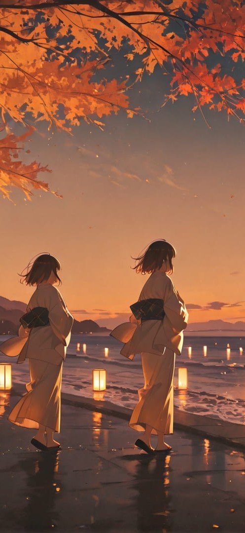 Yellow Sunset City Sakura | Portrait wallpaper | 9:16 | Free smartphone wallpaper