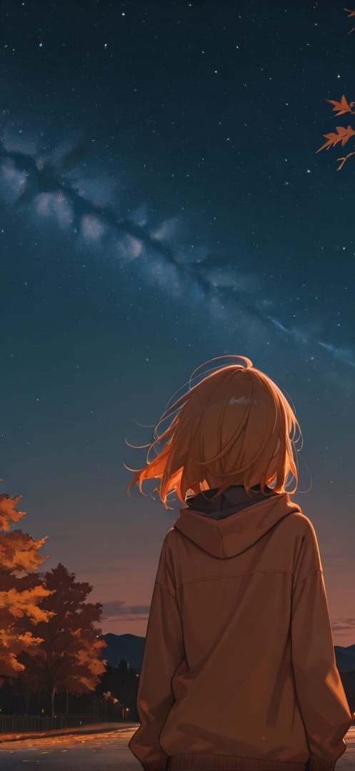 Orange Night Sky StarrySky smartphone wallpaper free download, vertical 16:9 format, Orange, Night, Sky, Autumn