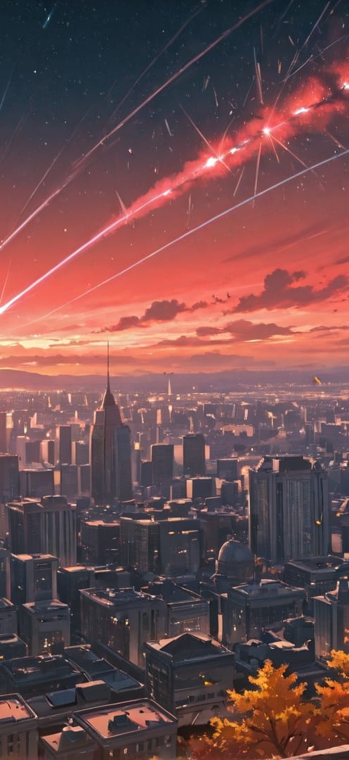Red Afternoon City StarrySky smartphone wallpaper free download, vertical 16:9 format, Red, Afternoon, City, Autumn