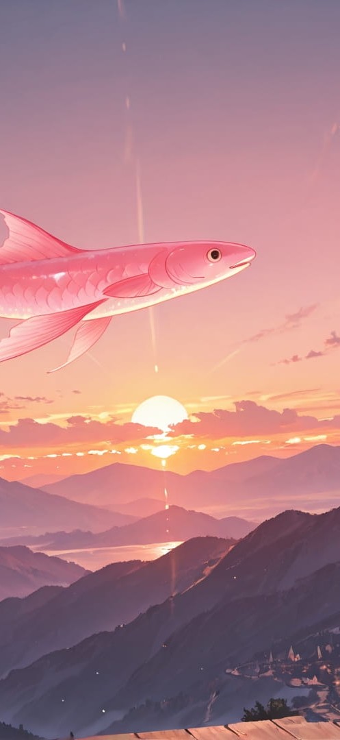 Pink Sunset Mountain Steampunk smartphone wallpaper free download, vertical 16:9 format, Pink, Sunset, Mountain, Summer