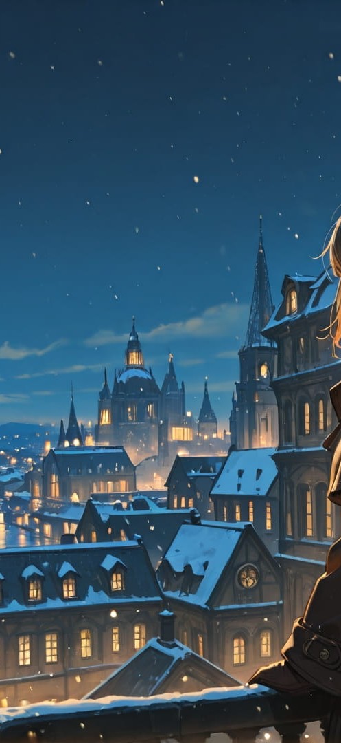 Yellow Night City Steampunk smartphone wallpaper free download, vertical 16:9 format, Yellow, Night, City, Winter
